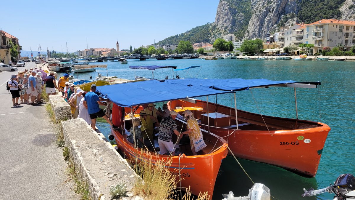 Czas leci. W niedzielę 15.06. jedziemy na wycieczkę do miejscowości Omiś, a potem do Splitu. Omiś to urokliwe miasteczko u ujścia rzeki Cetiny. Płyniemy łodziami kanionem rzeki między górami i podziwiamy przepiękne widoki. Omiś ma ciekawą historię, bo w średniowieczu budziło grozę jako siedziba piratów. Natomiast Split to stolica Dalmacji i drugie co do wielkości miasto w Chorwacji. Najważniejszym zabytkiem jest gigantyczny pałac cesarza Dioklecjana, budowany w III i IV wieku (znajduje się na liście UNESCO). O godz. 12.00 mieliśmy okazję zobaczyć inscenizację pozdrowienia ludu przez cesarza i jego żony w otoczeniu pretorian. Z ciekawością słuchamy historii tego miejsca, a potem podziwiamy piękną promenadę i port w Splicie.