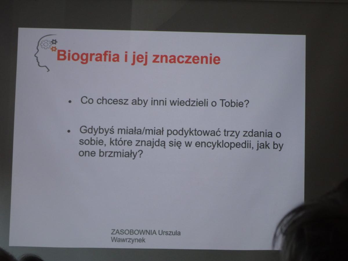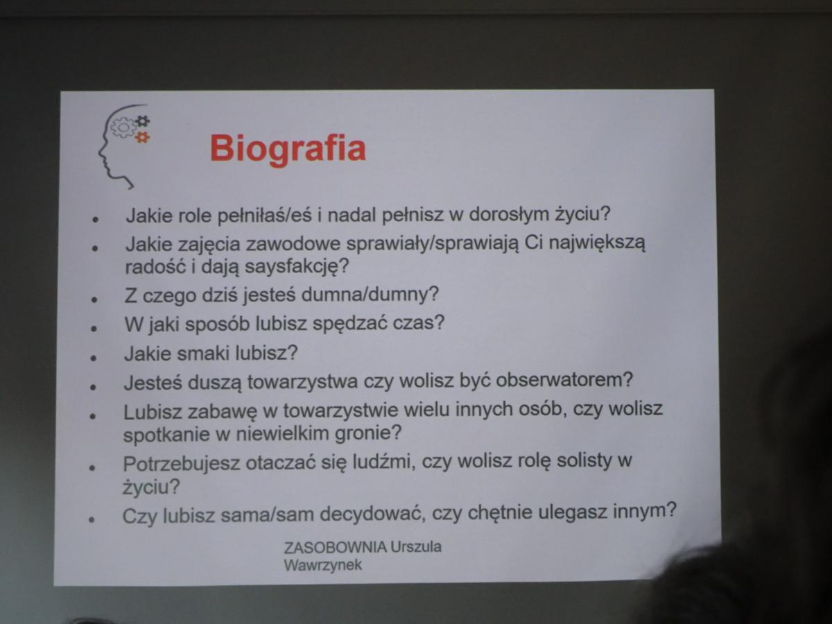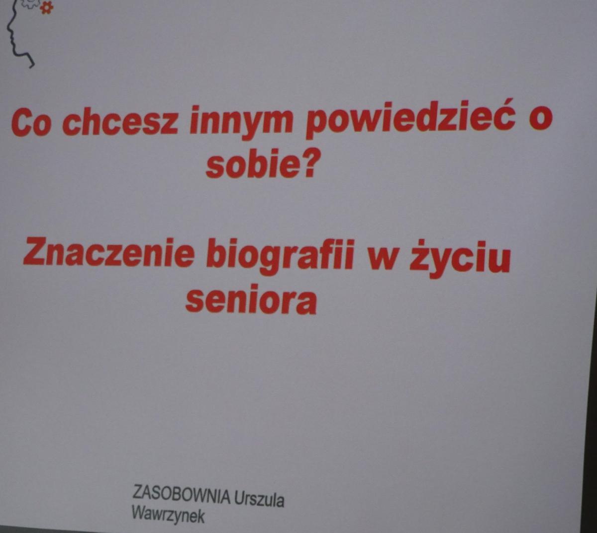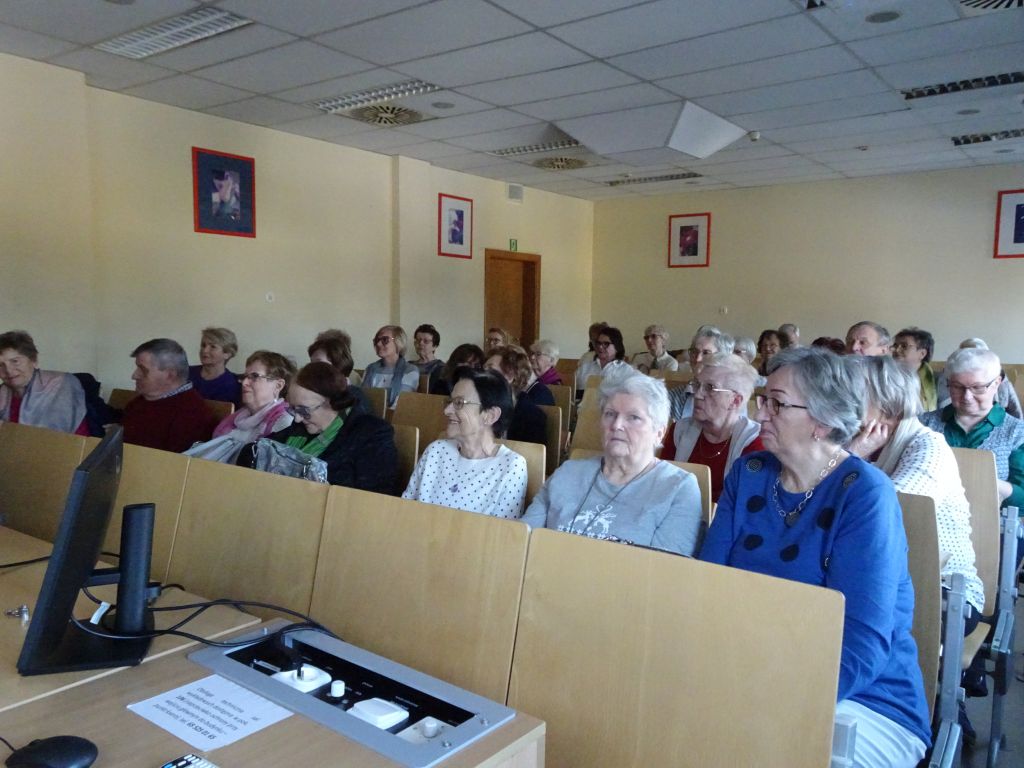 Kilka zdjęć z wykładu, dobrze już nam znanej Urszuli Wawrzynek. Temat dzisiejszego spotkania, podobnie jak poprzednie, cieszył się dużym zainteresowaniem. Pani Urszula zachęciła słuchaczy do podzielenia się osobistymi historiami z życia. Na podstawie jednej z takich wypowiedzi rozwinęła się ciekawa dyskusja na temat cech charakteru oraz umiejętności otwierania się przed innymi. Dyskusja ta stała się naturalnym wstępem do propozycji pani Urszuli, aby każdy spróbował opisać interesujące wydarzenia ze swojego życia – coś w rodzaju autobiograficznych wspomnień.