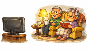 On: Więc jeśli ktoś mówi, że starość to nie radość… niech przyjdzie do nas. Dam mu herbatę, pilot do telewizora i pokażę, jak się odpoczywa z godnością.