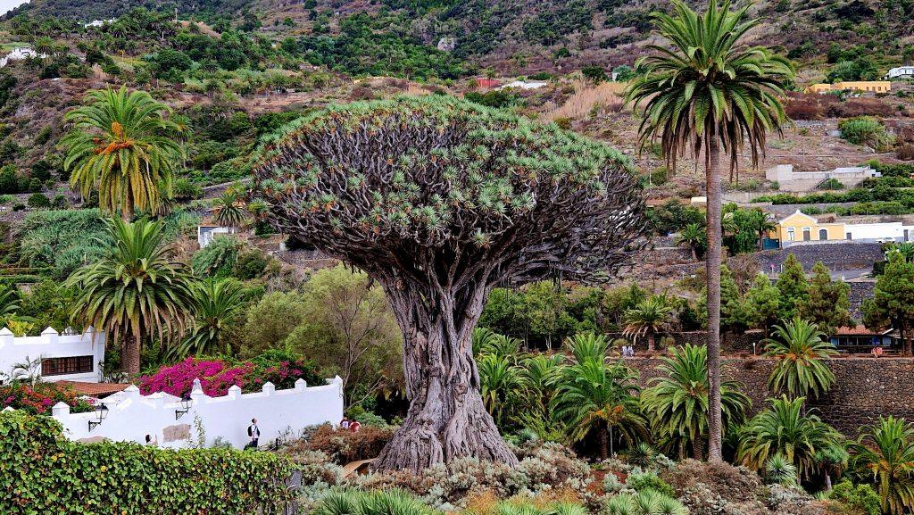 Smocze Drzewo, rosnące od 800 lat w Icod de los  Vinos, to prawdziwy gigant w swoim gatunku. Okazuje się, że jeśli naciąć korę tej dracenie, to wypływająca żywica po kontakcie z powietrzem zmienia kolor na krwistoczerwony. Likier sprzedawany w pobliskim sklepiku – Drag’s liqueur – jest produkowany na jej bazie i doskonale komponuje się np. z szampanem.
