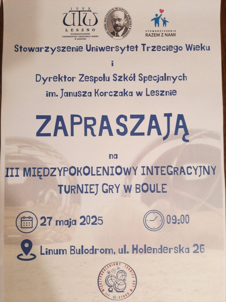 We wtorek 27 maja 2025 r., o godz. 9.00, odbędzie się III Międzypokoleniowy Integracyjny Turniej Gry w Boule.