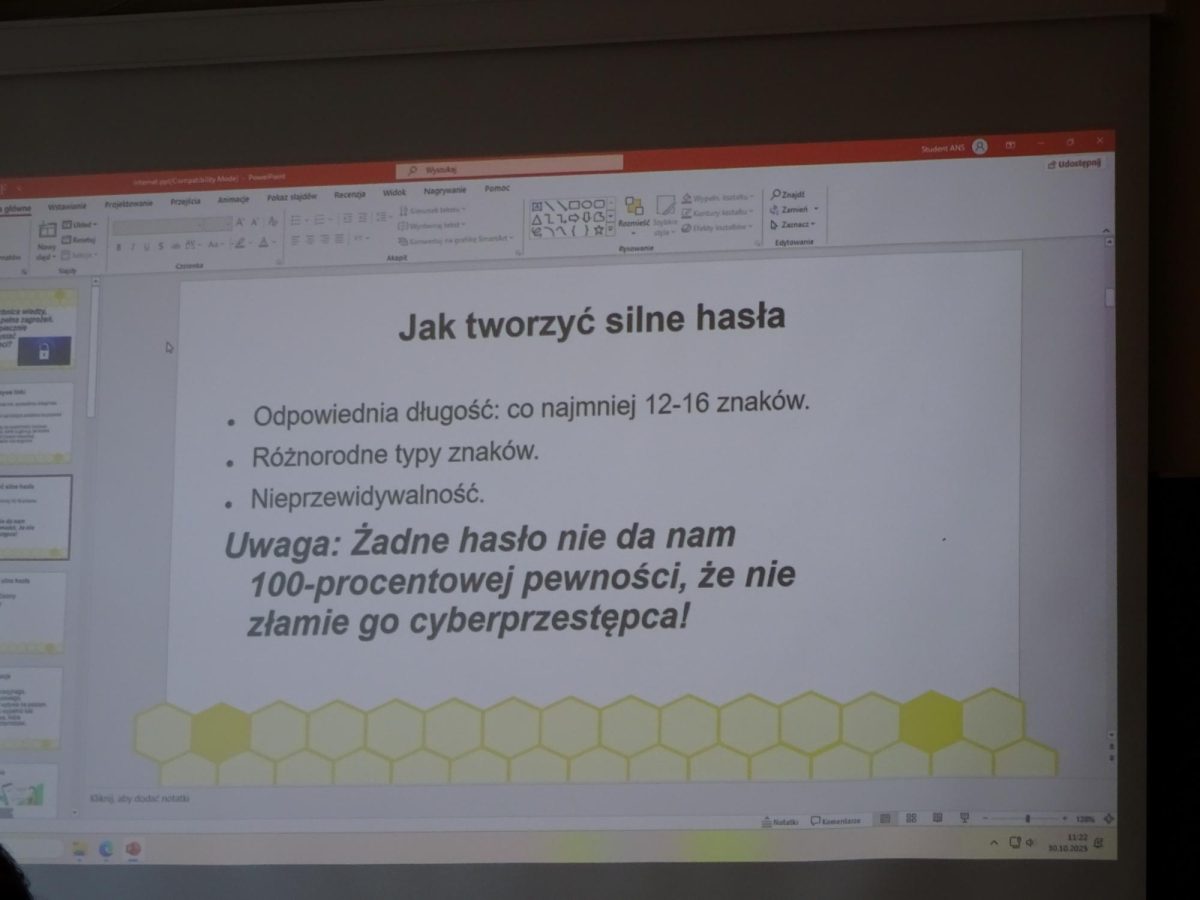 30 października 2025 roku spotkaliśmy się w Akademii Nauk Stosowanych, aby wysłuchać wykładu na temat zagrożeń, z jakimi możemy się spotkać, korzystając z internetu.