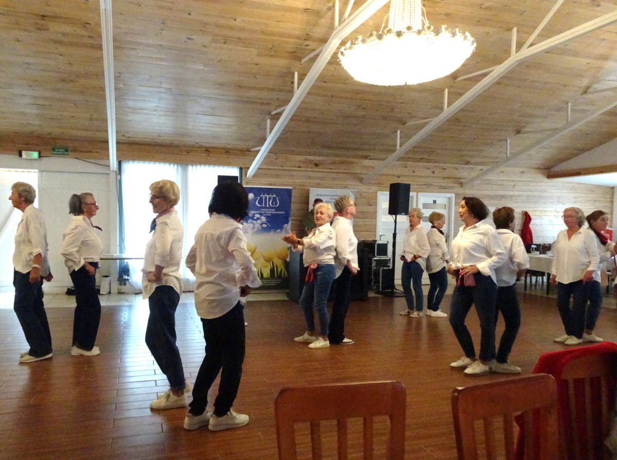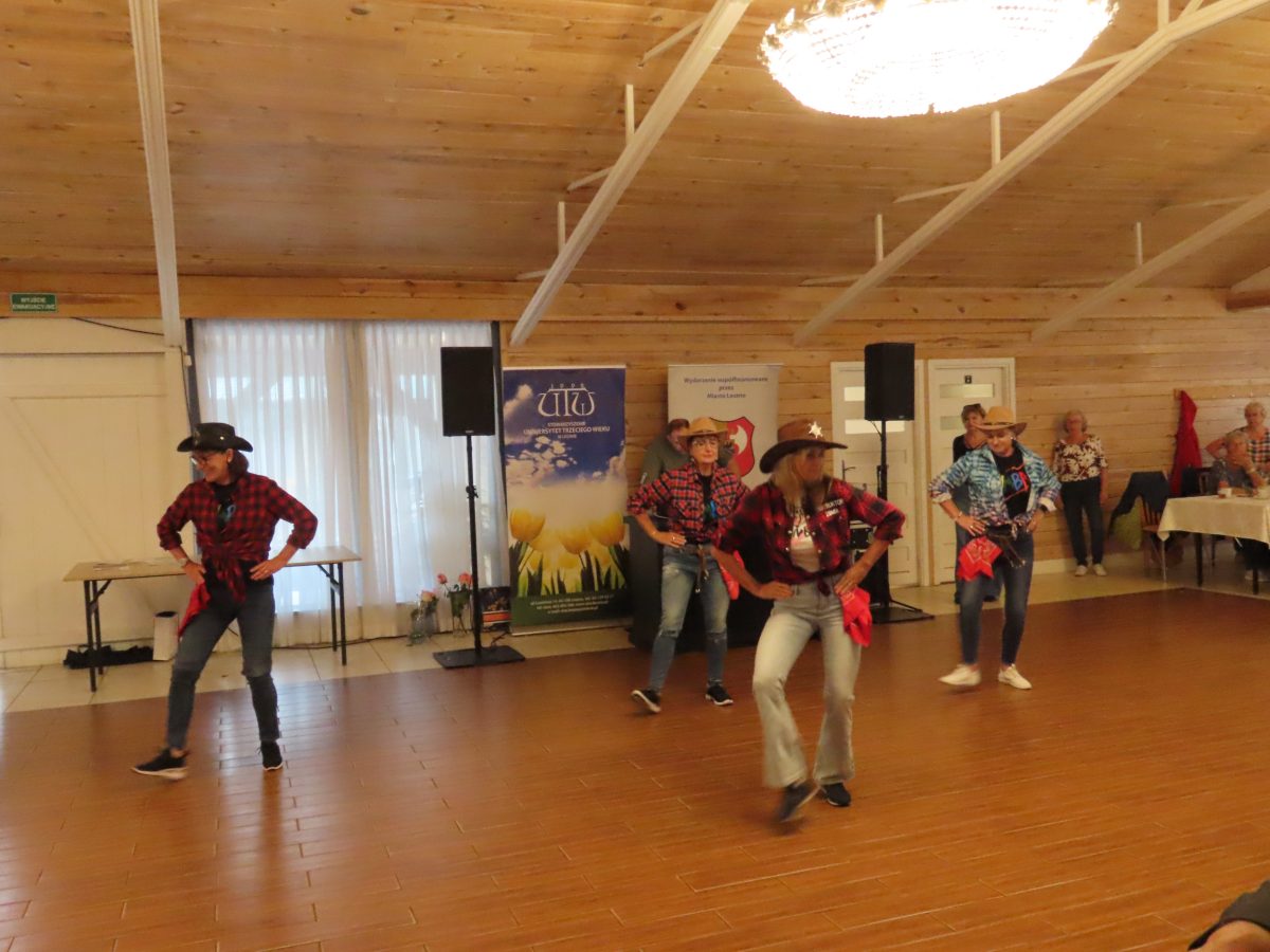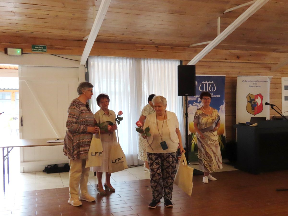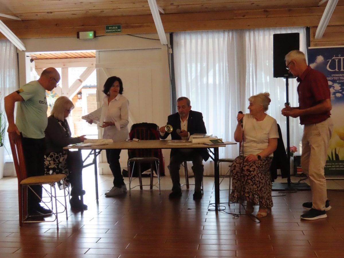Uroczystość otworzyła wiceprezes zarządu, Barbara Szarszewska, która w serdecznym przemówieniu podziękowała wszystkim słuchaczom za „obecność, zaangażowanie i nieustanny głód wiedzy”. Wyrazy uznania przekazała członkom sekcji, dzięki aktywności i kreatywności których wszystkie sekcje naszego uniwersytetu tętnią życiem. Słowa szczególnej wdzięczności mówczyni skierowała do niezastąpionych wolontariuszy – za każdą godzinę poświęconą przez nich na przygotowanie wydarzeń i spotkań integracyjnych. Następnie przyszedł czas na wyróżnienia. Przede wszystkim zasłużyły na nie trzy członkinie naszego uniwersytetu, które nie opuściły żadnego wykładu. Są to: Krystyna Marszałek, Urszula Przezbór i Zdzisława Szpurek. Wyróżniono również zarząd za ciężką pracę wykonywaną w wolontariacie i Teresę Krawczyk „za pozyskiwanie pieniędzy na realizację zadań statutowych”, radę słuchaczy za „pomysły, kreatywność i gotowość do pomocy zarządowi”, a komisję rewizyjną za „czuwanie nad naszymi finansami”. Wszyscy wyróżnieni otrzymali jako gratyfikację kwiaty róży. Docenione zostały również administratorki strony internetowej za systematyczne i profesjonalne jej prowadzenie, członkowie sekcji rękodzieła, malarskiej i fotograficznej za kreatywność i piękne wernisaże, a pisarki z sekcji literackiej za niezmiernie ważne dla społeczności – nie tylko uniwersyteckiej – publikacje. Za przepiękne prezentacje w Klubie podróżnika podziękowania otrzymali ich twórcy, a uczestnicy olimpiad sportowych – za godne reprezentowanie naszej społeczności oraz zdobyte puchary, medale i sukcesy. Zaś wszyscy członkowie uniwersytetu otrzymali podziękowania za wspólnie spędzony rok – pełen nauki, aktywności i wzajemnej inspiracji. Potem scena należała do artystów. Zrobiło się naprawdę wesoło. Teatr przy stoliku wystąpił z programem satyrycznym. Artyści z ogromnym dystansem i humorem przypomnieli nam, że szkoła – niezależnie od wieku – potrafi być źródłem nie tylko wiedzy, ale i anegdot. W dalszej części spotkania sceną zawładnęły taniec i muzyka. Grupa taneczna zaprezentowała się z gracją i pasją w dwóch tańcach: były to zmysłowa bachata do utworu „California Blue” i taniec westernowy na podstawie songu „Cotton Eye Joe”. Chór wystąpił z refleksyjnymi piosenkami „Marianno” i „Zabrałeś serce moje”, a zespół zumby porwał wszystkich swoją energią, odtwarzając w przygotowanym programie elementy tańca kowbojskiego (zresztą w adekwatnych do rodzaju muzyki strojach) oraz tańca latino do utworu „Calma”. Finałem spotkania był poczęstunek i tańce już dla wszystkich. Kto tylko miał ochotę, dołączył.