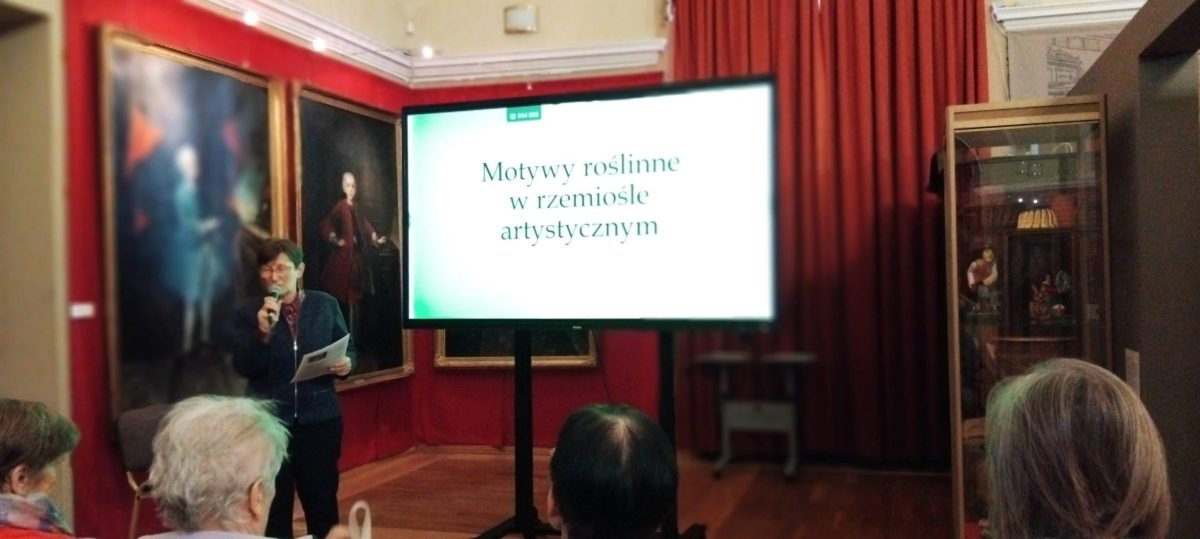 W czwartek, 19 marca, spotkaliśmy się w Muzeum Okręgowym i okazało się, że nastąpiła zmiana osoby prowadzącej. Wykład zaprezentowała pani Małgorzata Gniazdowska, a jego temat to ,,Motywy  roślinne w rzemiośle artystycznym”. Pani Małgorzata bardzo ciekawie przedstawiła historię wytwarzania wyrobów z  porcelany. Okazuje się, że piękne, delikatne przedmioty z porcelany w Chinach produkowano już w latach 1400. Już wtedy te przedmioty dekorowane były motywami kwiatów i innych roślin. Takie motywy dekoracyjne były  popularne przez następne stulecia. Dzięki starannie przygotowanej prezentacji, mogliśmy  podziwiać unikalne fotografie eksponatów datowanych od 1400 do 1930 roku. Obrazy te pozwoliły prześledzić drogę, jaką przeszło rzemiosło artystyczne – od surowych, tradycyjnych wzorów wschodu, aż po finezyjne formy z początku XX wieku.