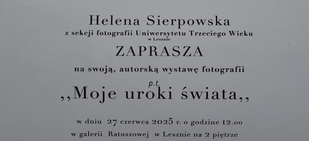 Sekcja fotograficzna serdecznie zaprasza na kolejny wernisaż indywidualnej, autorskiej wystawy fotografii Heleny Sierpowskiej pt. „Moje uroki świata”.