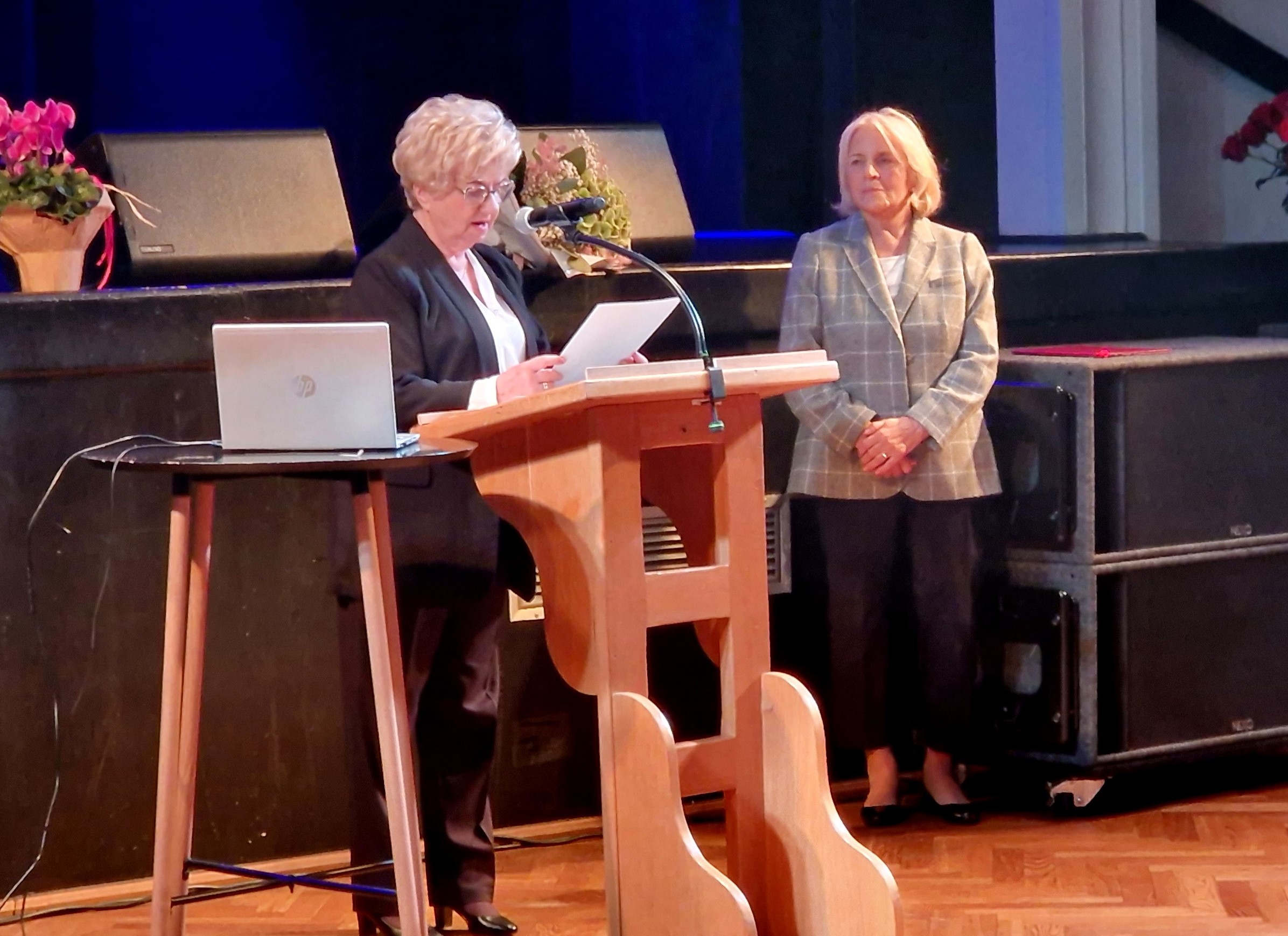 Tytuły i podziękowania wręczyła prezes UTW podczas uroczystej inauguracji rozpoczęcia roku akademickiego 10 października 2024 r. w auli Miejskiego Ośrodka Kultury w Lesznie. (ek)