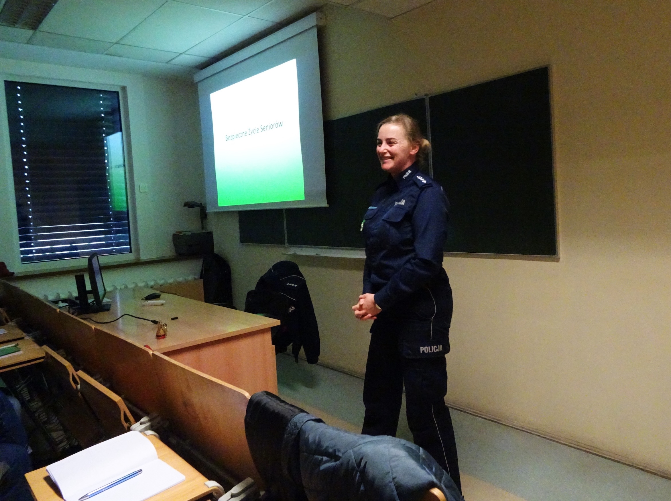 Prawo o ruchu drogowym to temat który zgromadził sporą grupę słuchaczy. Pani asp. szt. Anna Stelmaszczyk z Komendy Miejskiej Policji w Lesznie w dniu 10.11.2025 r. mówiła o pieszych jako uczestnikach ruchu, o ich prawach i obowiązkach, o rowerzystach – jak zgodnie z prawem powinni zachowywać się w ruchu, kiedy i w jakich okolicznościach mogą korzystać z chodnika, no i oczywiście o prawidłowym zachowaniu się kierowców samochodów poruszających się ulicami miast. Było wiele pytań, rozwinęła się również dyskusja na temat organizacji ruchu i ewentualnych zmian organizacji ruchu na niektórych skrzyżowaniach w naszym mieście.