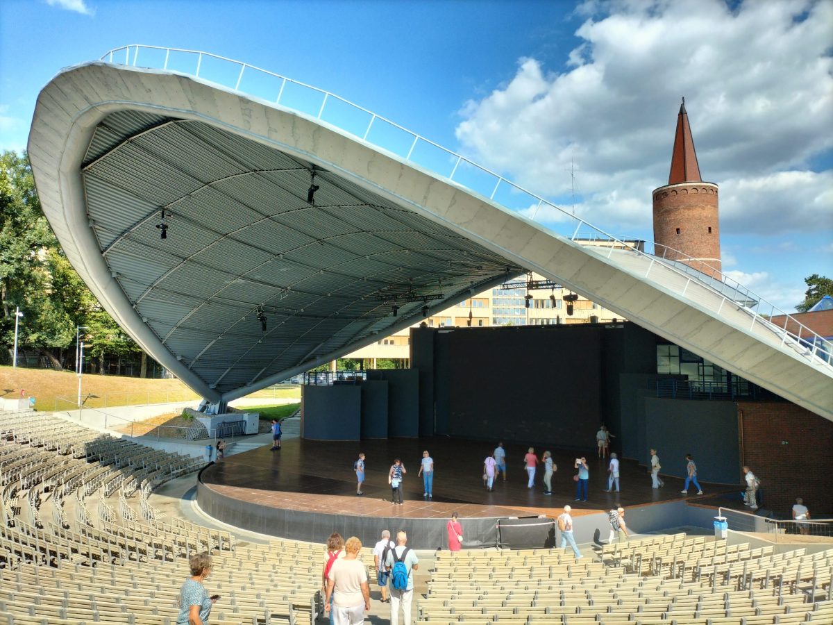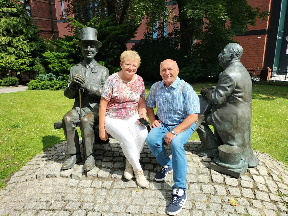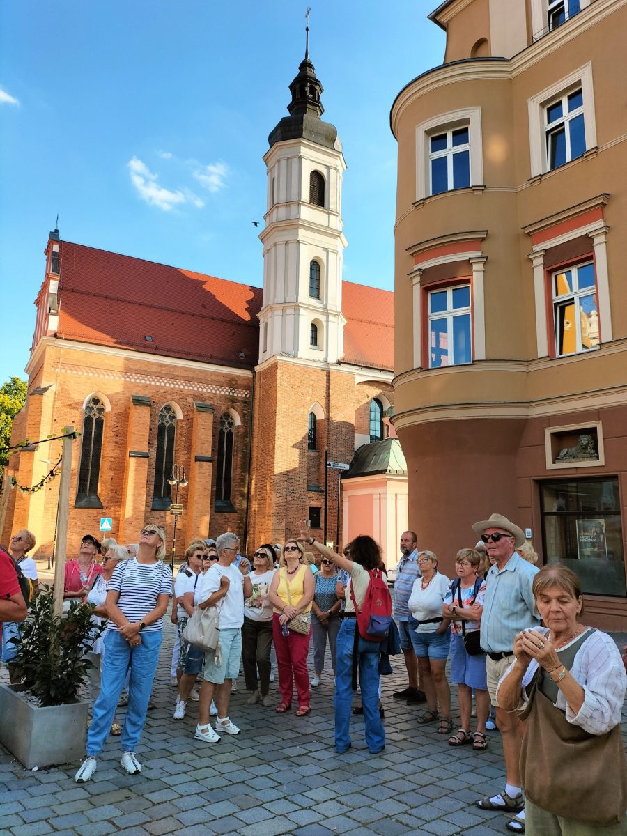 Śladami historii i piękna – Opole i okolice. 19 i 20 sierpnia 2025 roku w ramach dofinansowanego przez PFRON projektu „Przez aktywność do zdrowia” grupa 48 osób (w tym w przeważającej liczbie osoby niepełnosprawne) uczestniczyła w wyjeździe turystycznym, w trakcie którego zwiedziła Opole, Mosznę i Głogówek. Dzięki temu poznaliśmy historię i zabytki tej części Polski, które bardzo ciekawie przedstawiła oprowadzająca nas pani przewodnik. Opole to piękne miasto włączone do Polski w 990 r., a w XIII wieku stało się stolica księstwa. Miasto  wiele razy zmieniało przynależność państwową – należało do Czech, Austrii, Prus i w końcu do Polski. Od1950 roku jest stolicą województwa, a od 1963 r. stolicą polskiej piosenki. Pośród wielu znanych mieszkańców Opola należy wspomnieć Edmunda Osmańczyka (polityk), Jerzego Grotowskiego (awangardowy reżyser teatralny), Karola Musiała (włodarz Opola – inicjator Festiwalu Polskiej Piosenki w Opolu). Szczególnym punktem programu wycieczki był pobyt w muzeum polskiej piosenki, gdzie prezentowana jest historia i rozwój muzyki estradowej w Polsce. Korzystając z urządzeń multimedialnych mieliśmy możliwość posłuchania piosenek, ale i możliwość śpiewania „bo każdy śpiewać może ”, a także ubrania się wirtualnie w stroje znanych piosenkarzy. Zapoznaliśmy się z historią Polskiego Radia, obchodzącym w tym roku setną rocznicę istnienia, przypomnieliśmy sobie najpopularniejsze audycje takie jak: Muzyka i Aktualności, czy Lato z Radiem. Przy muzeum znajduje się słynny opolski amfiteatr, gdzie grupa osób z naszej wycieczki zaśpiewała na scenie nawet kilka piosenek i przekonaliśmy się, że jest tam świetna akustyka. Przespacerowaliśmy się Aleją Gwiazd, odwiedziliśmy skwer, na którym znajdują się rzeźby miedzy innymi Niemena, Grechuty, Osieckiej, Kofty, Młynarskiego.