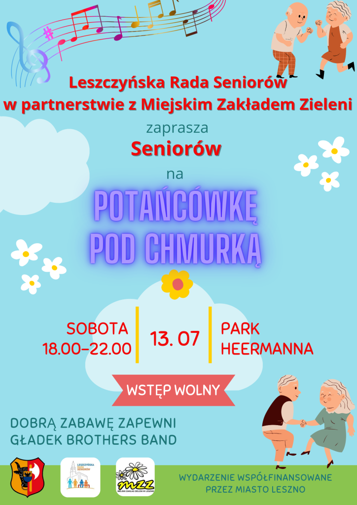 Zakładem Zieleni zaprasza seniorów na POTAŃCÓWKĘ POD CHMURKĄ, w sobotę 13.07.2024 r. do Parku Heermanna w godzinach od 18.00 do 22.00. Wstęp wolny. (NG)