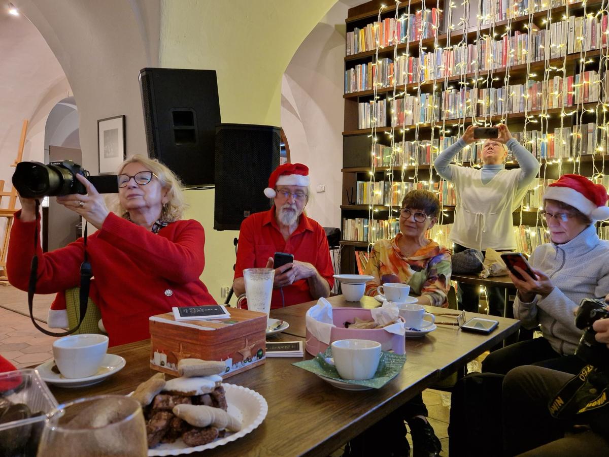 Sekcja fotograficzna spotkała się w dniu 19 grudnia 2024 r. po raz ostatni w roku kalendarzowym. Starosta Tadeusz Kin wraz z prowadzącym Ryszardem Cienkim zadbali o piękną oprawę tego spotkania. Był to nie tylko czas integracji, ale także wymiana doświadczeń fotograficznych, wspomnień najciekawszych plenerowych chwil oraz pomysłów na projekty w nadchodzącym roku. W mikołajowych nakryciach głowy, w świątecznej atmosferze przy śmiechu i rozmowach zakończyliśmy rok pełen fotograficznych wyzwań i już nie możemy się doczekać nowych przygód w 2025 roku. (LN)