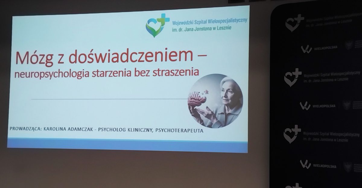 W czwartek 29.01.2026 mieliśmy okazję wysłuchać wykładu przygotowanego przez panią Karolinę Adamczak, psychologa klinicznego Wojewódzkiego Szpitala Wielospecjalistycznego. Temat wykładu ,,Mózg z doświadczeniem – neuropsychologia starzenia bez straszenia”.