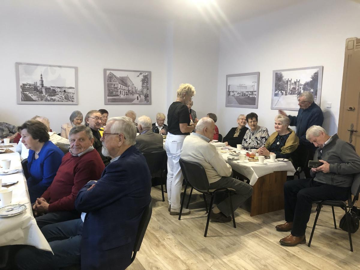 Po części oficjalnej rozpoczęła się część integracyjna. Seniorzy zostali poczęstowani pysznym, okazałym tortem. Następnie wystąpił kolega Marek Wilczyński, reprezentujący „Teatrzyk przy Stoliku”. Zaprezentował liryczne wiersze o miłości, kabaretowe monologi Mariana Załuckiego oraz swoje własne, które rozbawiły zgromadzonych.