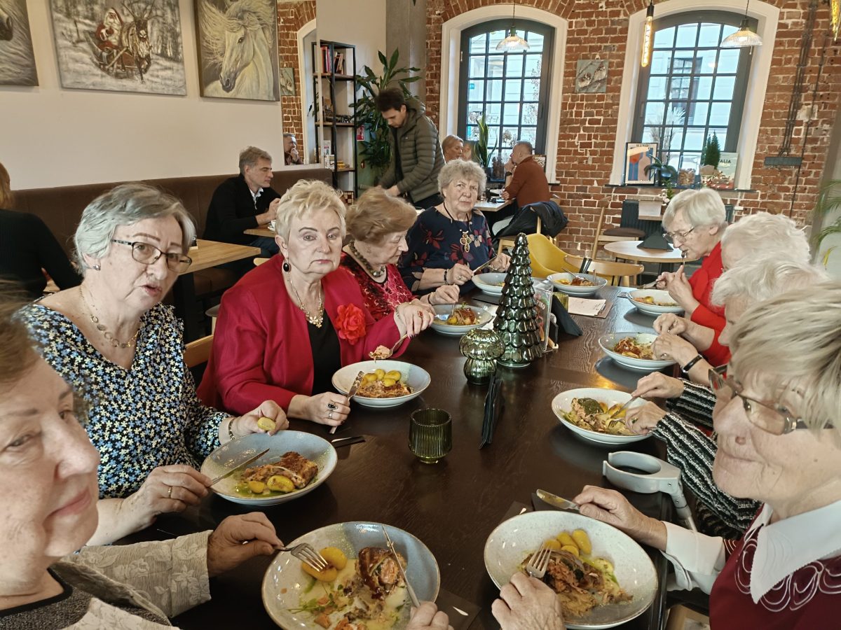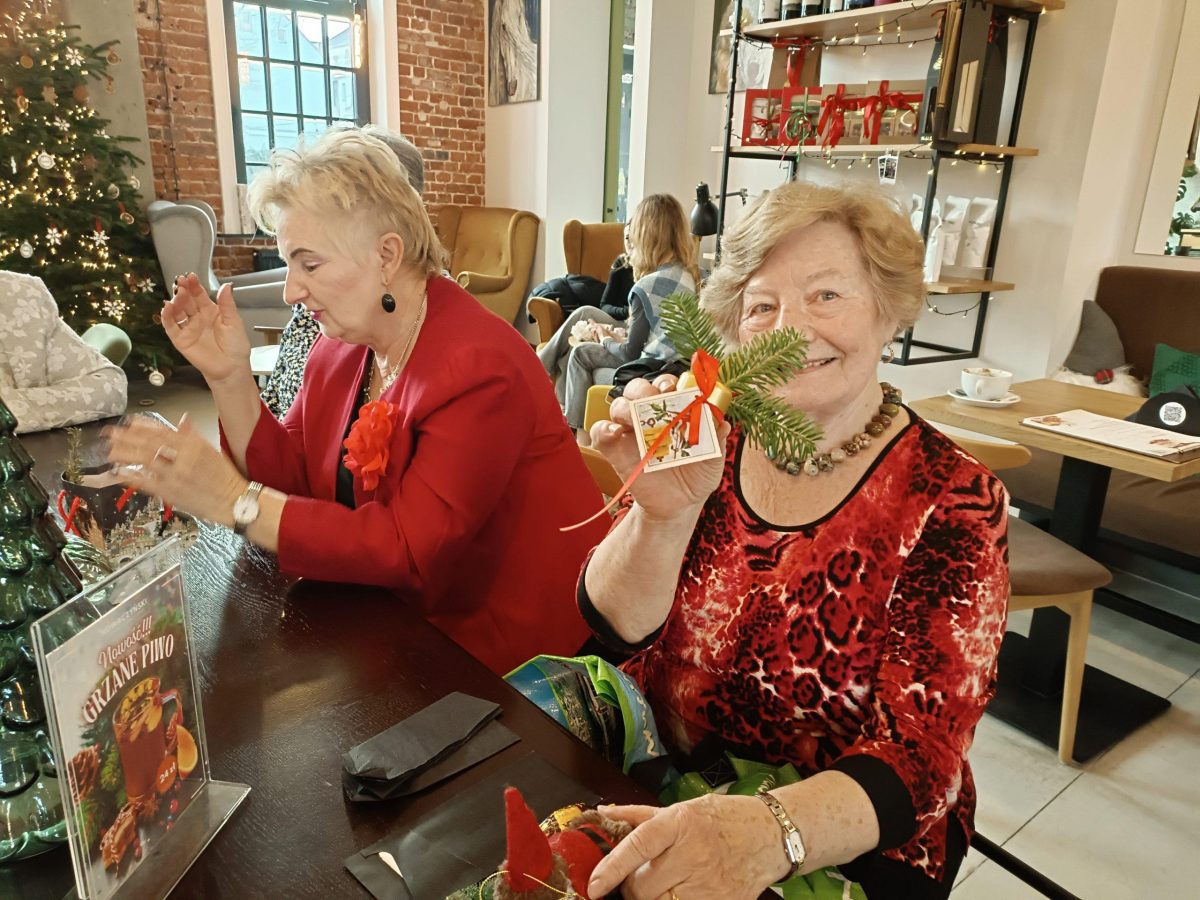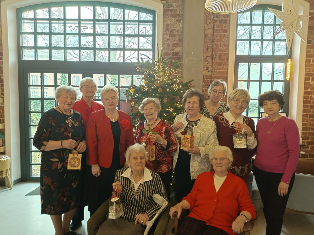 Tradycyjnie każdego roku, już 13 raz, spotykamy się przed świętami Bożego Narodzenia. Spotkanie bywało w salce UTW przy ul. Łaziebnej, przy alejach Krasińskiego, w sali im. Maciejewskiego w bibliotece na placu Metziga. Szykowałyśmy dania wigilijne – kutię, makiełki, kompot z suszu, również porcje ryb i oczywiście pieczywo: makowiec, piernik, sernik, drobne pierniki, mandarynki, słodycze. Były życzenia, kolędy, drobne upominki niespodzianki.