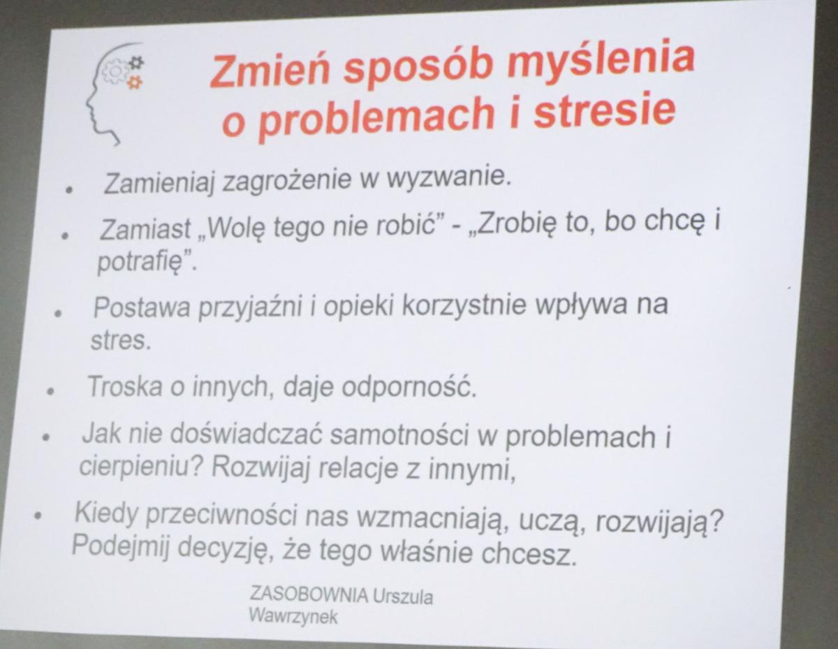 W poniedziałek, 31.03.2025, w sali ANS odbył się wykład p. Urszuli Wawrzynek, którego tematem była strategia radzenia sobie z problemami.