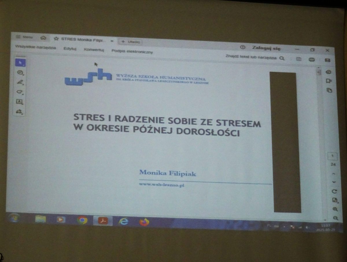 Dr Monika Filipiak na wykładzie, który odbył się 29 maja, przekazała nam wiele interesujących, a często również nowych informacji na temat stresu. Wyjaśniła, czym właściwie jest stres, co może być jego przyczyną oraz jakie kryteria służą do jego definiowania.