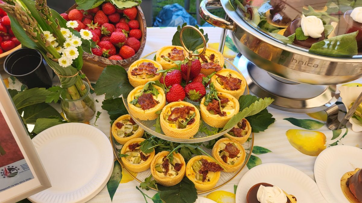 Szczególnie ciekawe okazały się potrawy, które zwyciężyły w kulinarnym konkursie „Szparagowa Doskonałość”, skierowanym do kół gospodyń wiejskich z całej Wielkopolski. Tematem konkursu były tarty szparagowe z kozim serem i suszonym pomidorem oraz musy szparagowo-truskawkowe z bezą. Oczywiście, mieliśmy przyjemność ich degustacji po zakończeniu prac komisji oceniającej.