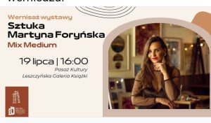 Zapraszam miłych członków UTW, a w szczególności sekcję plastyczną na niezwykłą wystawę prac Martyny Foryńskiej, która zabiera widzów w podróż po świecie głębokich faktur, intensywnych barw i nieograniczonej ekspresji… Wernisaż wystawy odbędzie się 19 lipca o godz. 16:00 w Leszczyńskiej Galerii Książki.