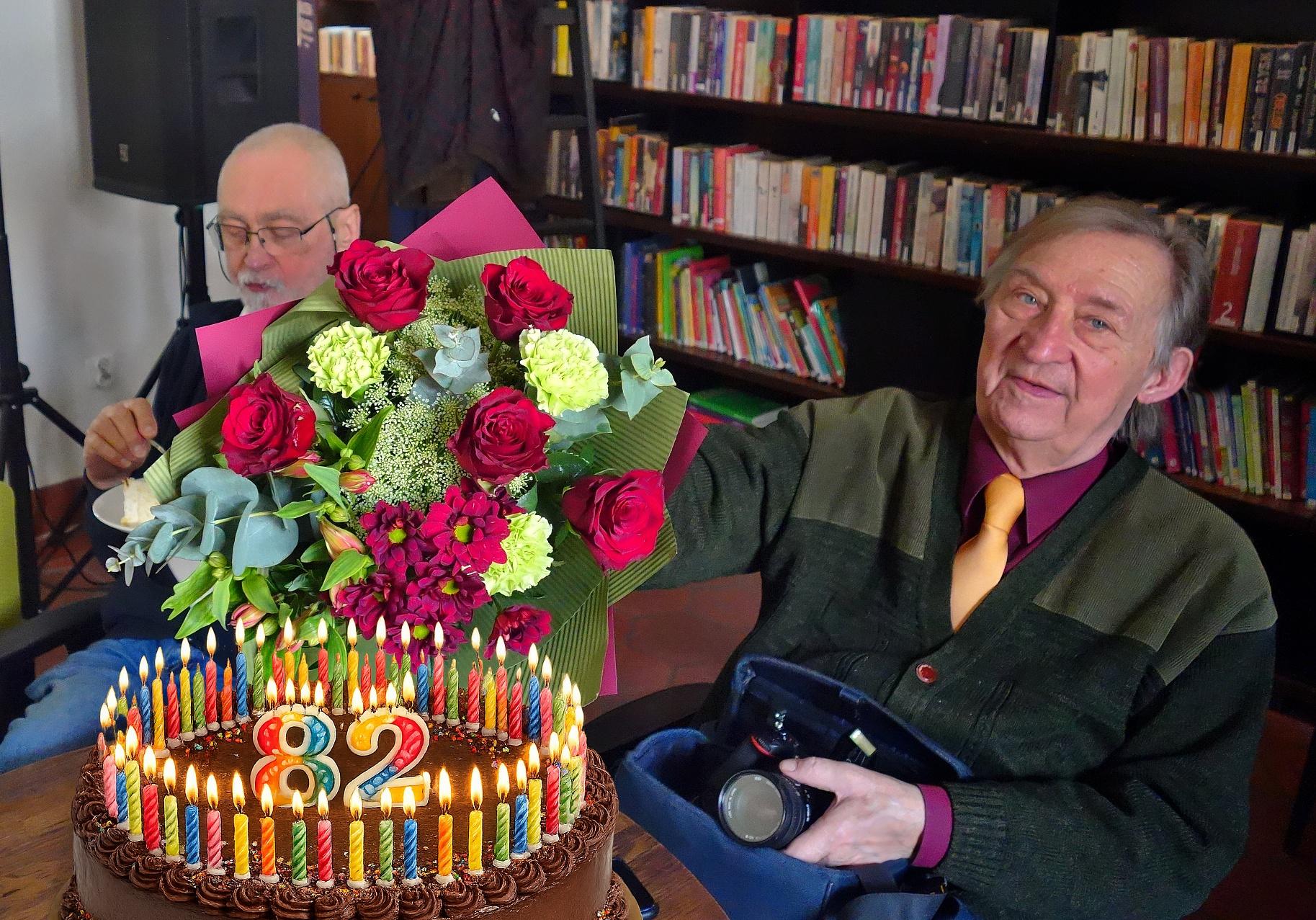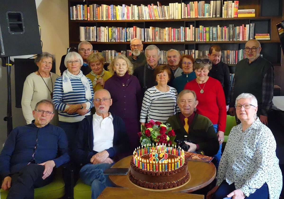Spotkanie sekcji fotograficznej w dniu 19 marca 2026 r. miało wyjątkowy, uroczysty charakter – świętowaliśmy urodziny naszego prowadzącego, Ryszarda Cienkiego. Nie zabrakło pięknych gestów: Leszek Plitt przygotował i wygłosił laudację na cześć Jubilata, Janka Gruszkiewicz wręczyła piękny bukiet kwiatów. Przy wspólnym torcie i kawie sala Biblioteki Ratuszowej wypełniła się gwarem serdecznych rozmów i śmiechem. Sam Ryszard nie krył wzruszenia. W krótkim, poruszającym przemówieniu podziękował za wspólną drogę i podkreślił, jak wielką radość sprawia mu dzielenie się fotograficzną pasją z grupą.