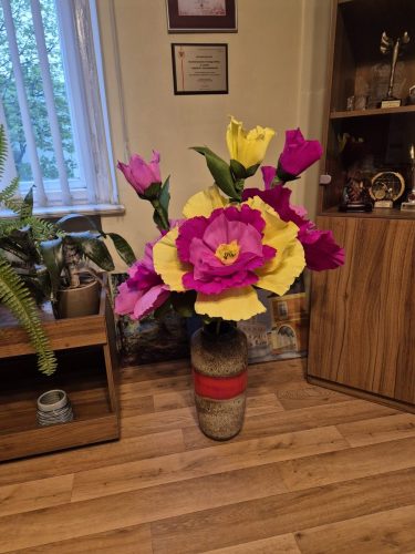 Kwiaty, które wykonałyśmy podczas warsztatów, mogą stanowić dekorację np. biura czy salonu.