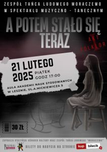 Rydzyński Ośrodek Kultury Zespół Tańca Ludowego „Moraczewo” serdecznie zaprasza na spektakl muzyczno-taneczny „A POTEM STAŁO SIĘ TERAZ… AKT. I FOLKLOR” w wykonaniu tancerzy Zespołu Tańca Ludowego Moraczewo w reż. Szymona Obolewicza.