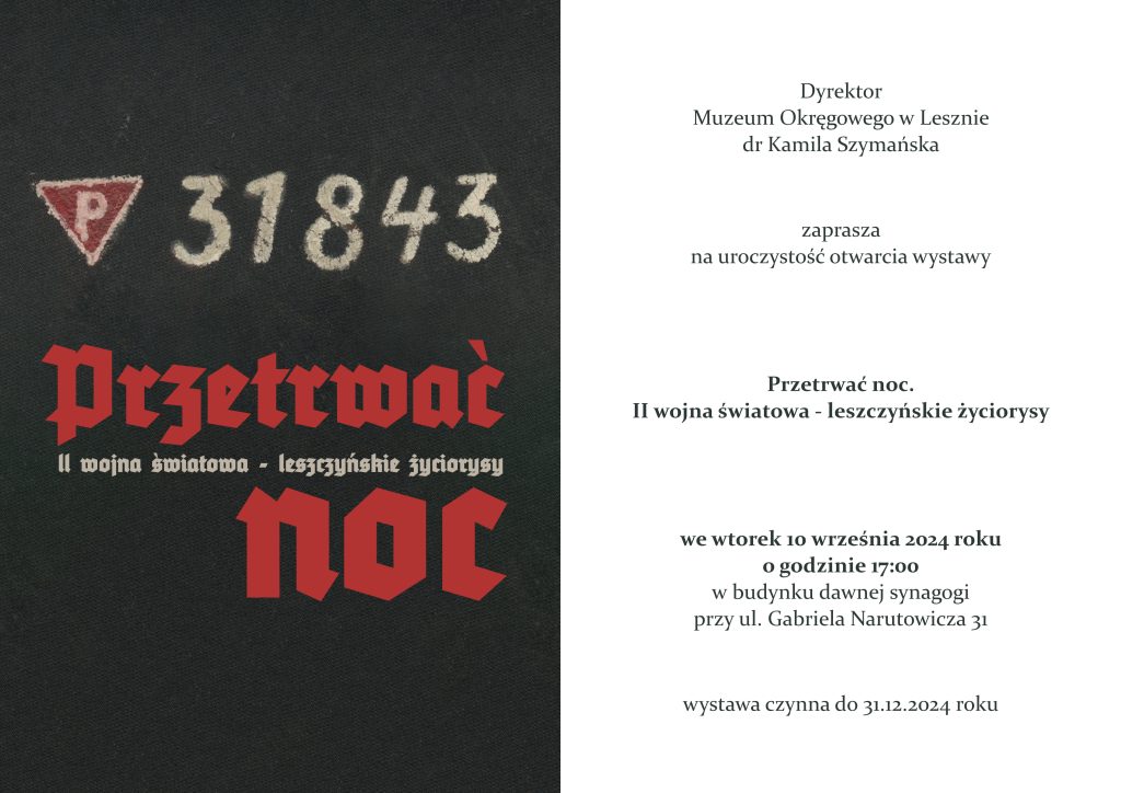 Muzeum Okręgowe zaprasza na uroczyste otwarcie wystawy „Przetrwać noc. II wojna światowa – leszczyńskie życiorysy”.