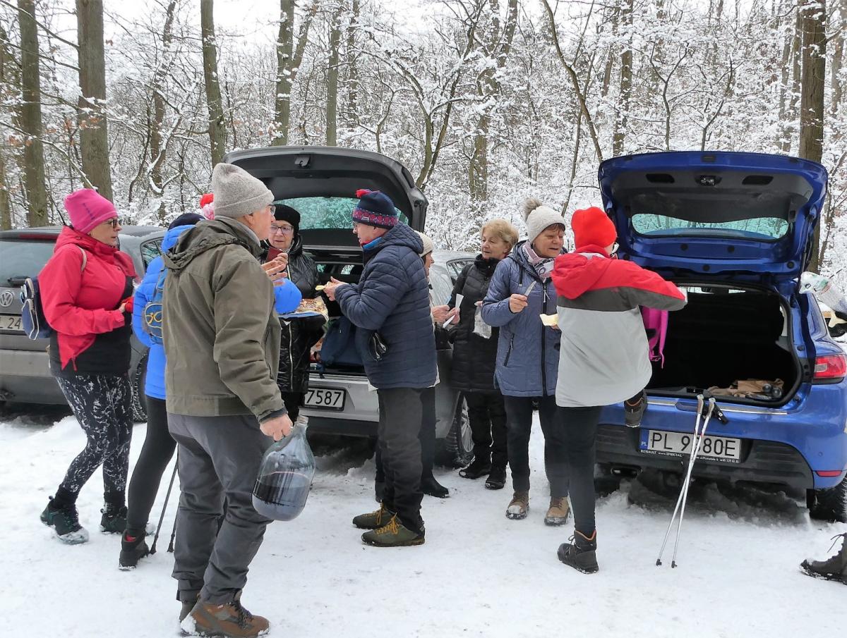 PTTK Łaziki we Włoszakowicach corocznie organizuje integracyjny rajd zimowy wokół leśnictwa Krzyżowiec. Często zdarzało się, że rajd zimowy był tylko w tytule, tym razem był zgodny z porą roku. Śnieg, mróz, las w zachwycającej zimowej szacie, sprzyjał nam w wędrówce, którą opracował nasz niestrudzony kolega Werner. Po przyjściu na polanę podziwialiśmy ulepione przez dzieci konkursowe bałwany, niektóre bardzo okazałe. Kiełbaska przy ognisku dopełniła rajdowy klimat.