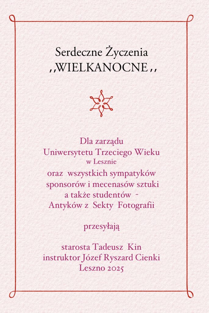 Otrzymaliśmy świąteczne życzenia od Instruktora i Starosty sekcji fotograficznej.